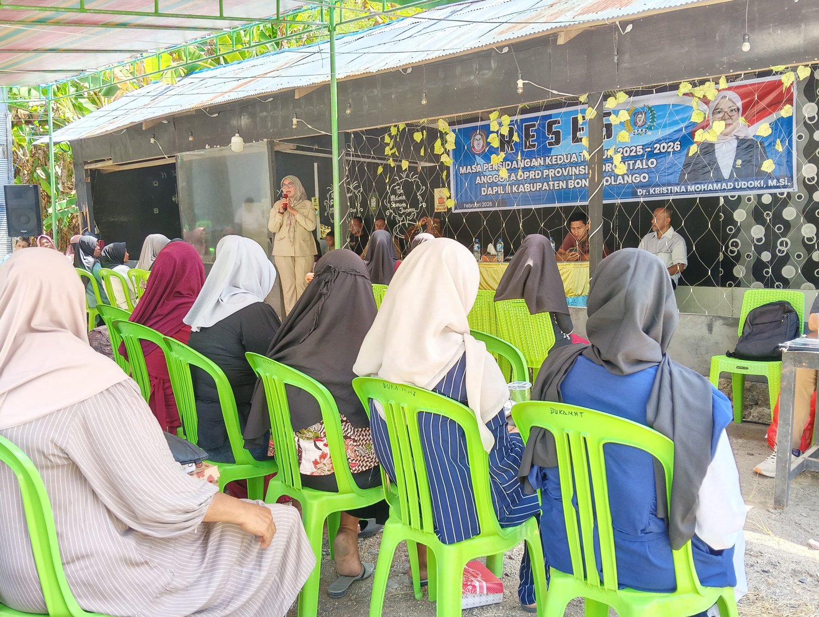 Anggota DPRD Provinsi Gorontalo, Kristina Mohamad Udoki, duduk bersama masyarakat dalam reses masa persidangan kedua tahun 2025–2026.
